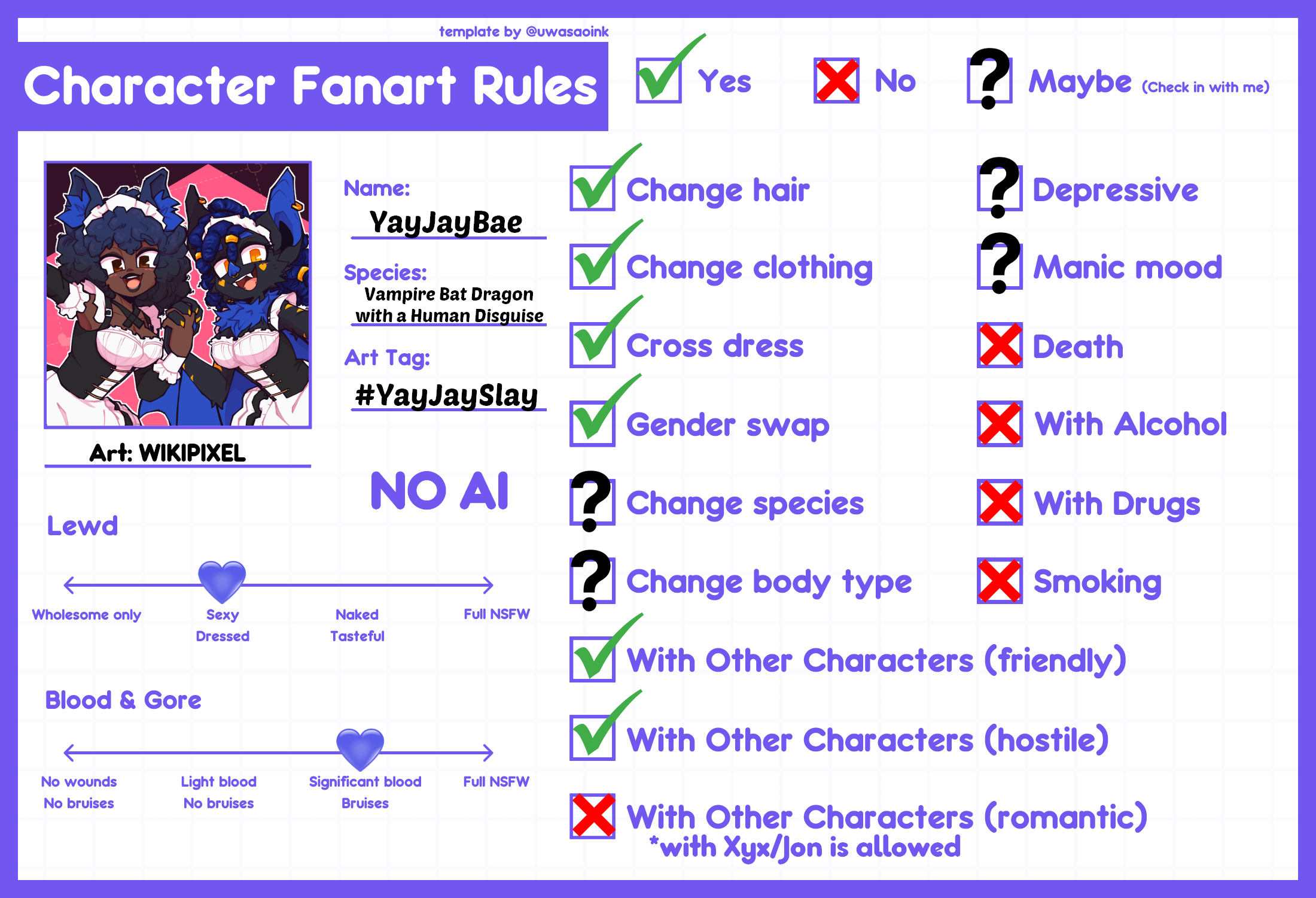 - Do not use YayJayBae's character or lore for RP.